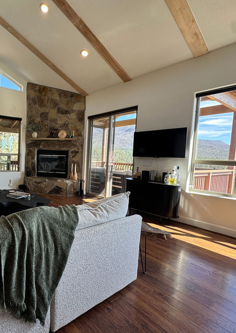 Perched among the tall pines of Pine, Arizona, this beautifully designed 2-bedroom, 2-bath retreat offers sweeping mountain views and the perfect blend of modern comfort and rustic charm. The open-concept living space features vaulted ceilings, warm wood floors, a stunning stone fireplace, and expansive windows that bring the outdoors in. A fully equipped kitchen with granite countertops and a spacious dining area makes gathering easy, while the private deck invites you to relax with morning coffee or sunset cocktails overlooking the forest. Thoughtfully styled and surrounded by nature, this elevated escape is ideal for couples, small families, or anyone looking to unwind in cool mountain air just a short drive from the Valley.